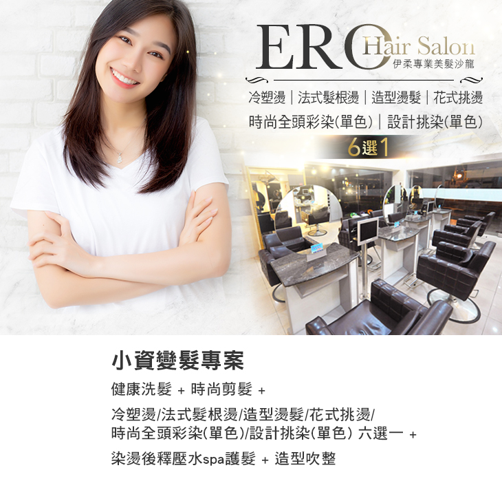 冷塑燙/法式髮根燙/造型燙髮/花式挑燙/時尚全頭彩染(單色)/設計挑染(單色) 六選一