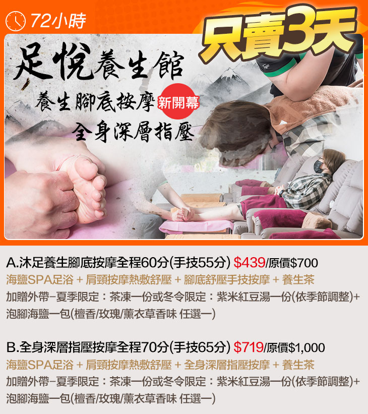 A.沐足養生腳底按摩全程60分(手技55分)