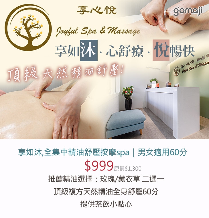 A.享如沐,全集中精油舒壓按摩spa|男女適用60分