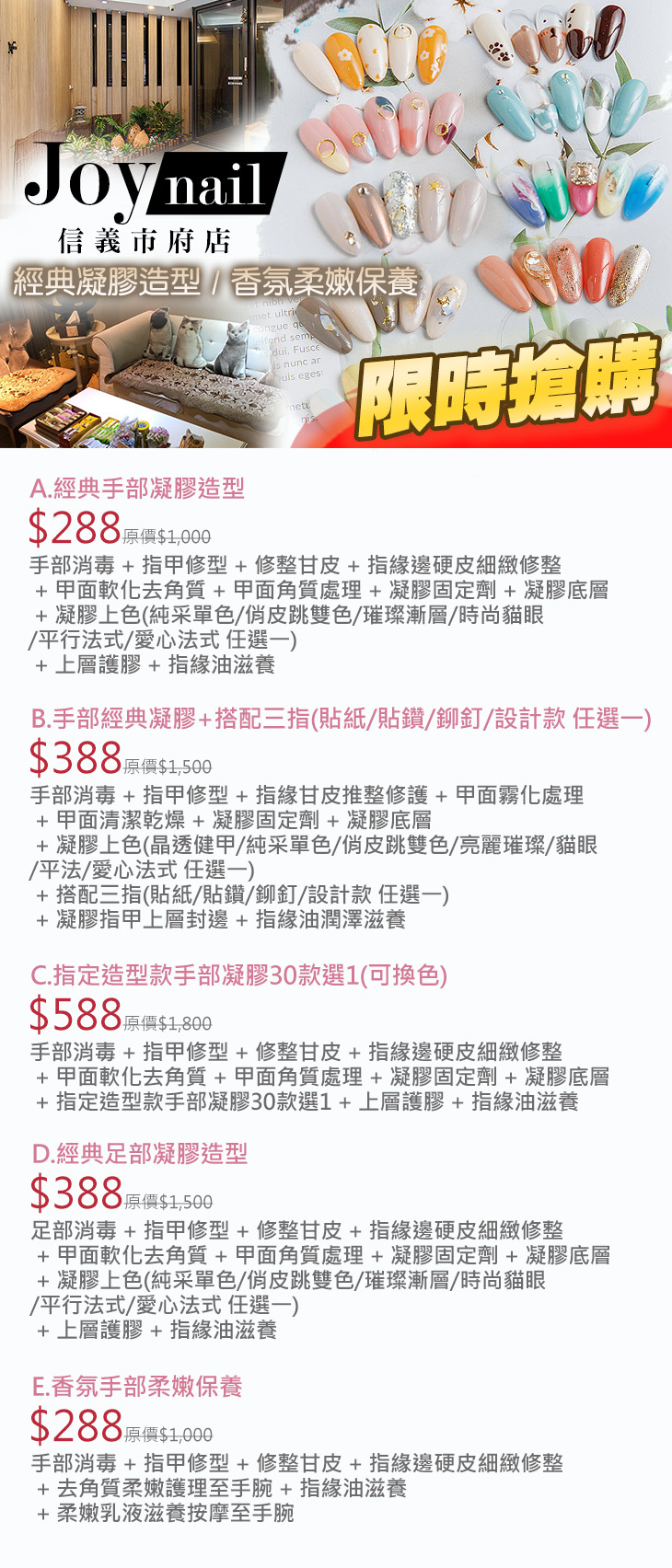 【Joy nail(信義市府店)】感謝麻吉們熱烈搶購,已全數賣光光。