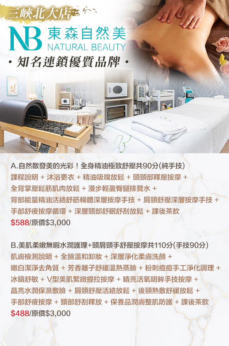 A.自然散發美的光彩!全身精油極致舒壓共90分(純手技) / B.美肌柔嫩無暇水潤護理+頭肩頸手舒壓按摩共110分(手技90分)