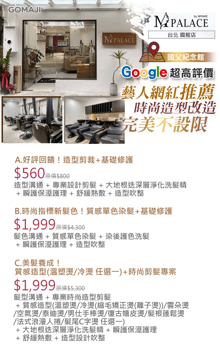 這家在Google上享有超高評價,受到不少藝人網紅大力推薦的美髮店,就位在國父紀念館附近!不論您今天想要打造什麼樣的時尚造型,這裡專業又貼心的設計師團隊都能為您完成心願!寬敞明亮又舒適的美髮空間,讓您即使久坐也不會感到不舒服~心動的麻吉們別再猶豫了!趕緊親自來體驗看看吧~