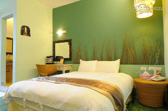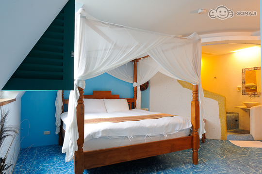 以純淨的藍色為基底色系的「峇里風情」,浪漫的紗幔大床,洋溢著一股清新的南洋風情,除了客房空間外,還有個小巧的和室與陽台,私密的互動空間,非常適合情人入住。而此房型改建完工後的這段時間,已有4-5對的情侶在此求婚,更是為峇里風情增添些許浪漫情懷,別有一番風情。
