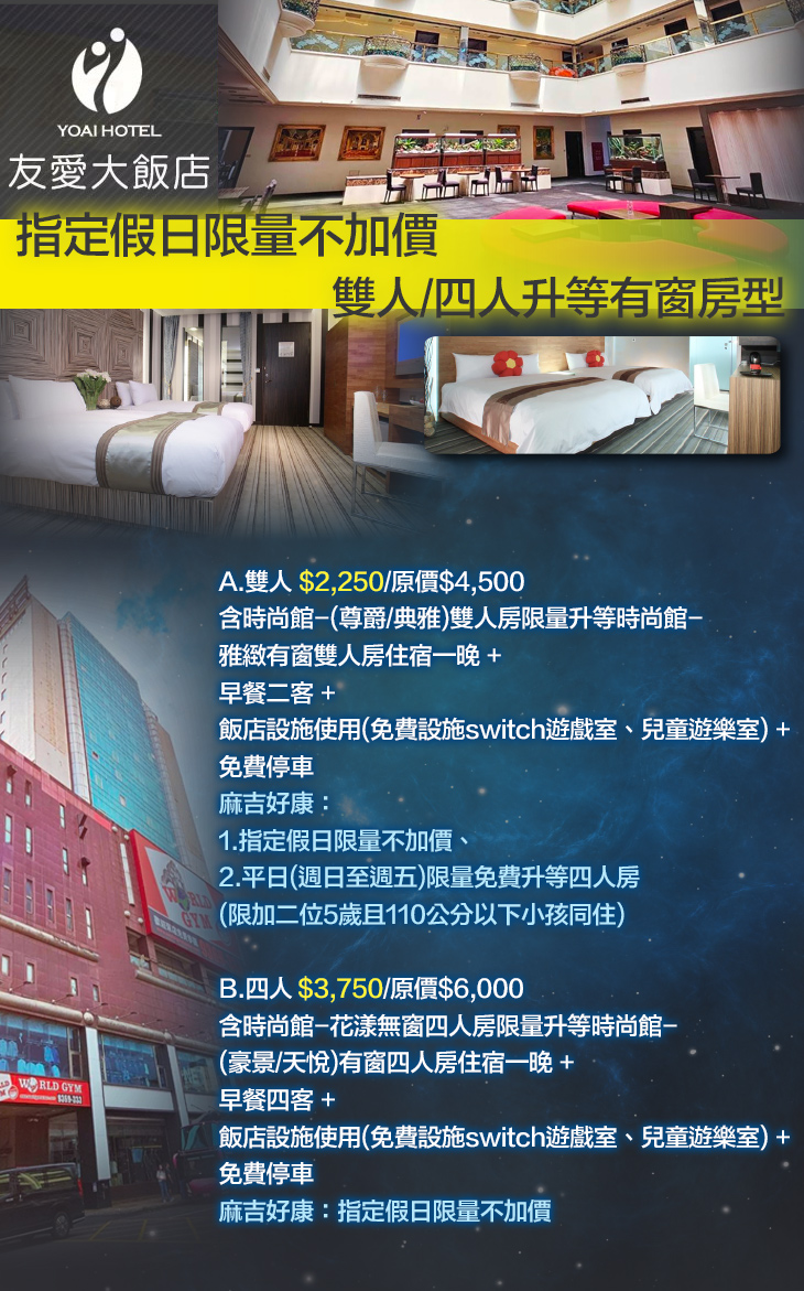 限量升等 | 時尚館-豪景有窗四人房 (B方案)