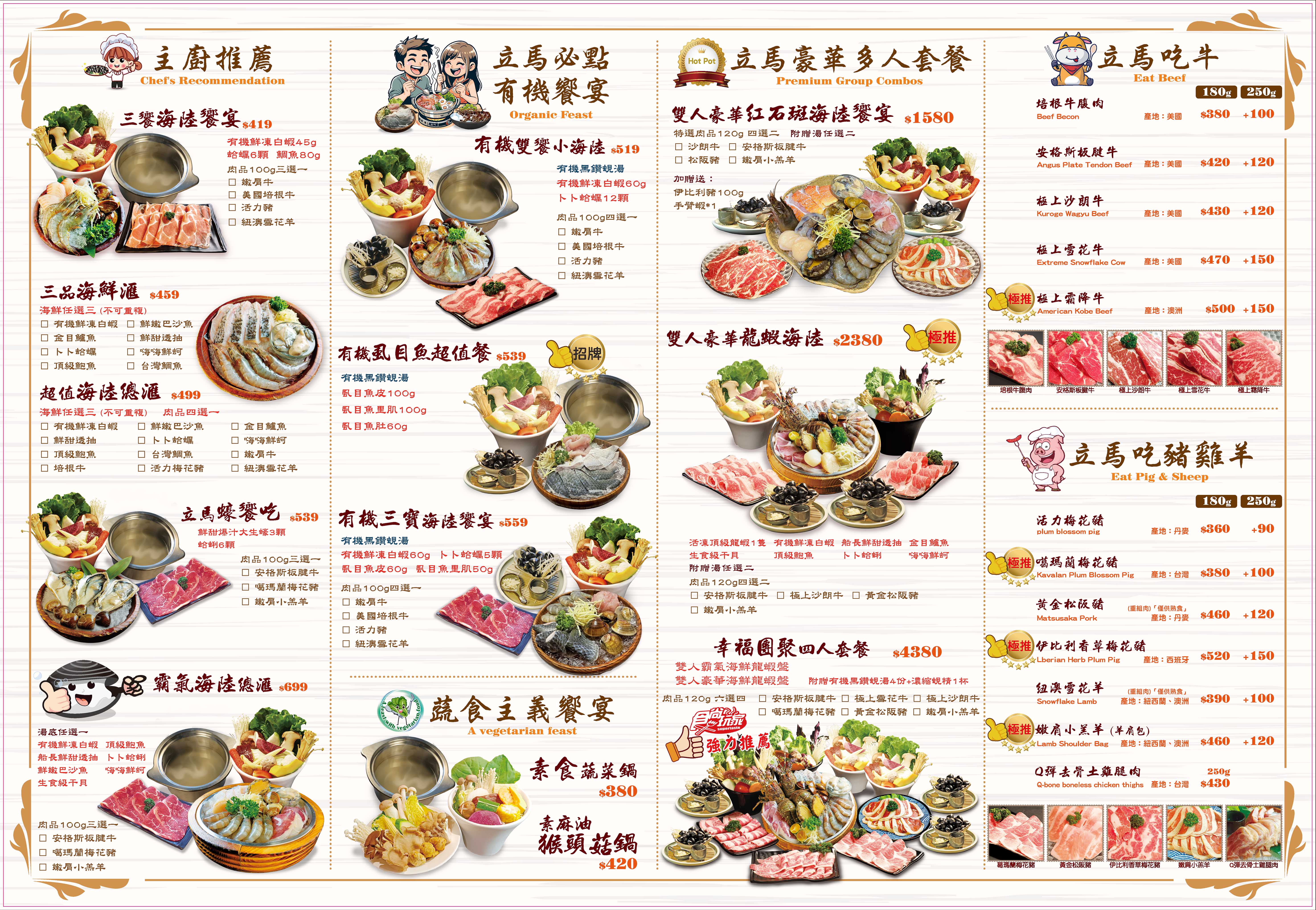 為您提供無與倫比的美味饗宴!以追求水產養殖的最高標準為使命,嚴格把關食材和海鮮的來源,確保所提供的食材都是高品質、新鮮可口的~這種承諾來自他們對食品的品質顧客滿意度的堅持。不僅提供您美味的鍋物選擇,還將火鍋提升到六星級的境界,讓您品味到最極致的滋味!無論您喜歡涮肉片、火鍋湯底、或者各種海鮮,都能滿足您的味蕾。在這裡,您可以享受一鍋美味,體驗食材的鮮美,以及極具品質的用餐體驗。如果您想要一頓難以忘懷的美食之旅,【立馬吃一鍋】將是您的理想之選!