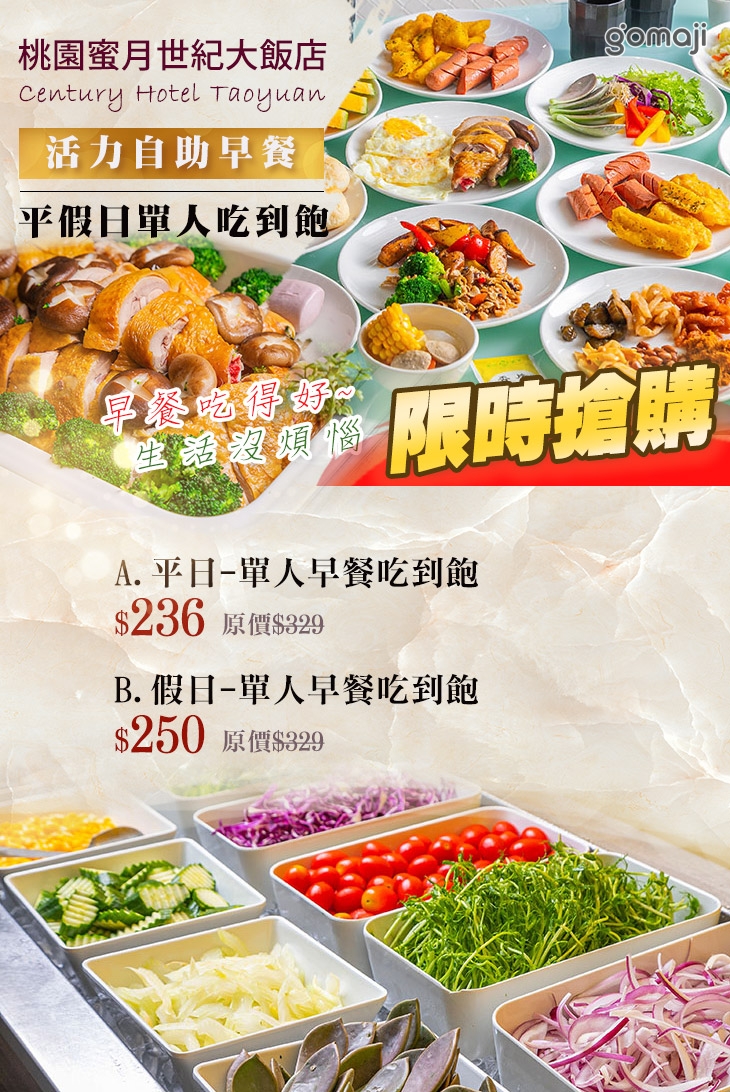 【蜜月世紀大飯店-活力自助早餐】感謝麻吉們熱烈搶購,已全數賣光光。