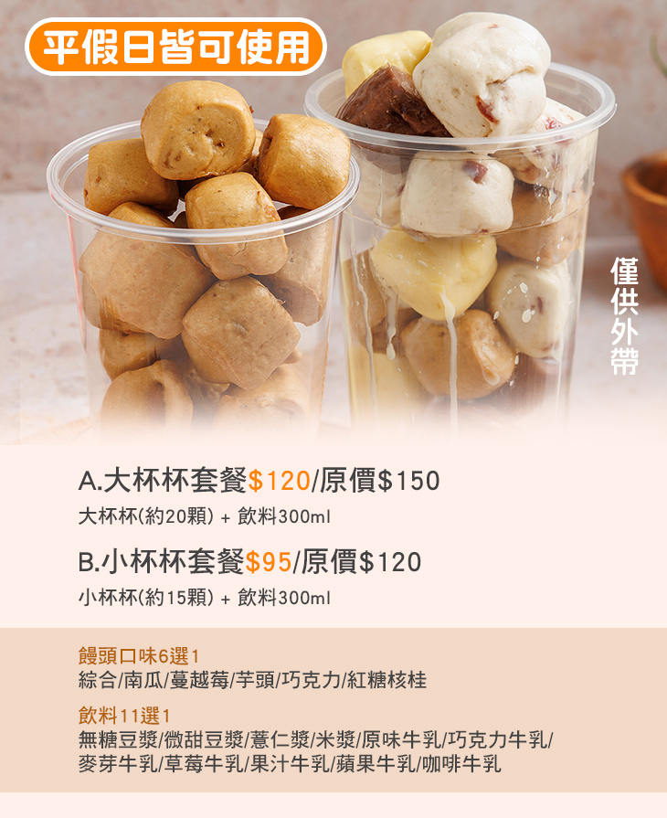 ※ 本優惠僅供外帶,實際包裝方式以現場為主。