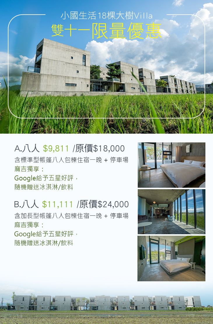 【宜蘭-小國生活18棵大樹Villa】感謝麻吉們熱烈搶購,已全數賣光光。