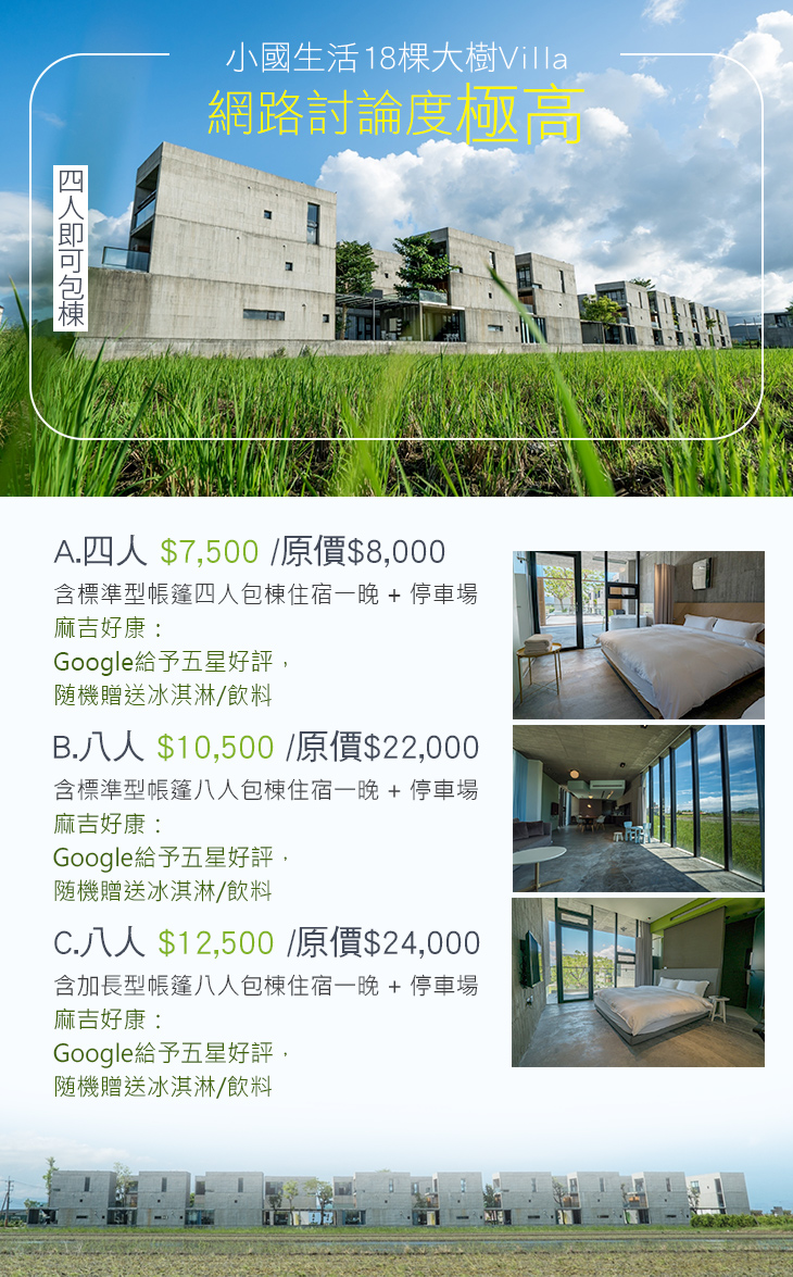 【宜蘭-小國生活18棵大樹Villa】感謝麻吉們熱烈搶購,已全數賣光光。