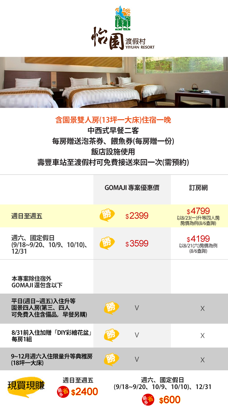 【花蓮怡園渡假村】感謝麻吉們熱烈搶購,已全數賣光光。
