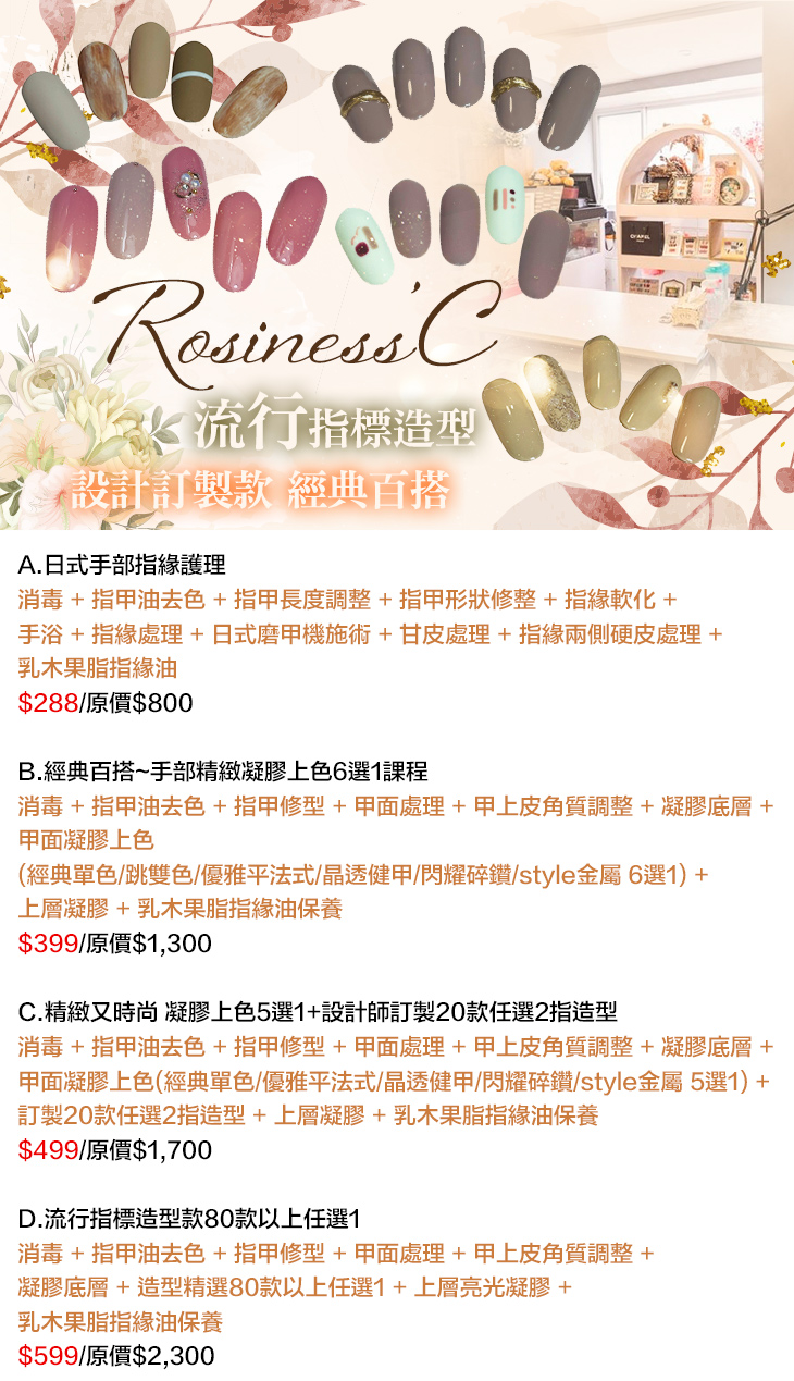 C.精緻又時尚 凝膠上色5選1+設計師訂製20款任選2指造型