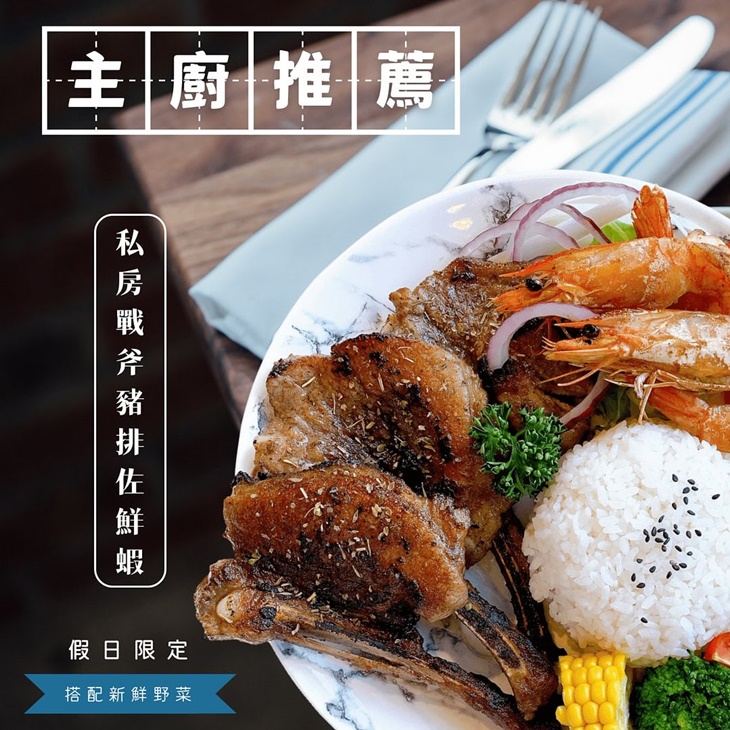 |私房戰斧豬排佐鮮蝦|
