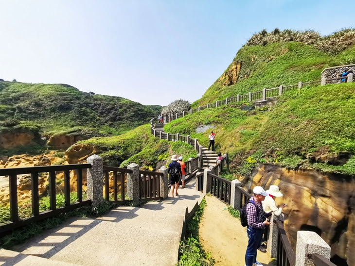 潮境公園這一區是國立海洋科技博物館的預定地,原本是垃圾掩埋場,經過妥善的規劃,如今已成為一座綠草如茵的海景公園,也是基隆地區少有的大型公園綠地,面山向海的天然景色,讓這變成全台最美的野餐公園。陽光撒下,海的顏色層次、九份山城的層層山巒,這樣的美景不輸給國外!這是IG上最熱門的打卡景點之一。