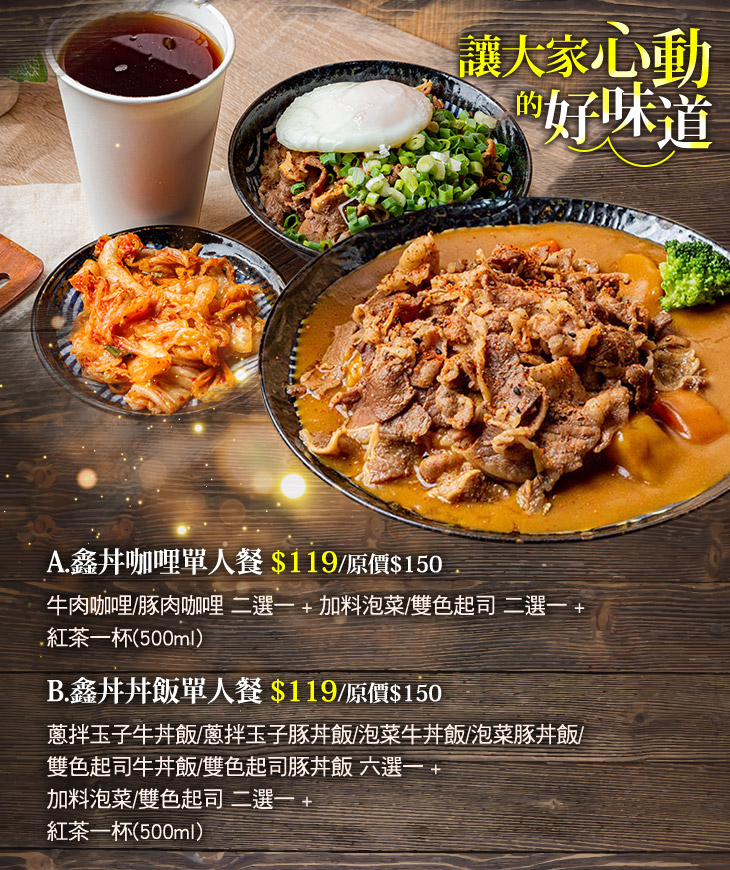 A.鑫丼咖哩單人餐 / B.鑫丼丼飯單人餐