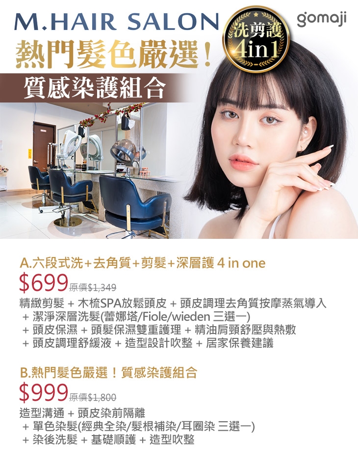 如果你想要讓自己變得時尚好看,除了穿搭可以改變之外,還必須要擁有一個亮麗髮型!必不可少的就是一位專業的髮型設計師來幫你,來到【M.Hair salon】絕對讓你放心,每位設計師,都有受過專業訓練,不管是什麼髮型,都可以提供你最好的意見、最佳的剪法,想擁有自信的光芒,選這裡準沒錯!