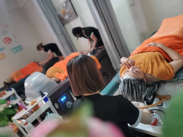 〈使用喚醒熱石能量精油:天然草本泡腳 + 腳部去角質 + 腳部按摩 + 頭部深層經絡按摩 + 肩頸按摩舒壓 + 越式洗頭 + 髮絲吹乾 + 享用茶點〉