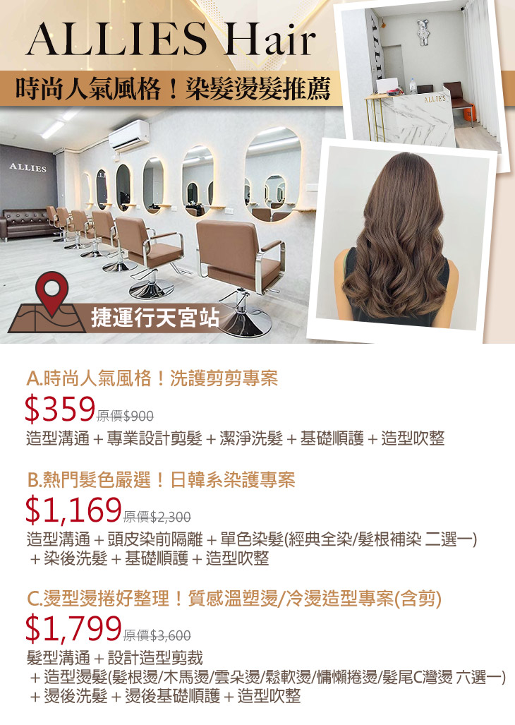 A.時尚人氣風格!洗護剪髮專案 / B.熱門髮色嚴選!日韓系染護專案 / C.燙型燙捲好整理!質感溫塑燙/冷燙造型專案(含剪)