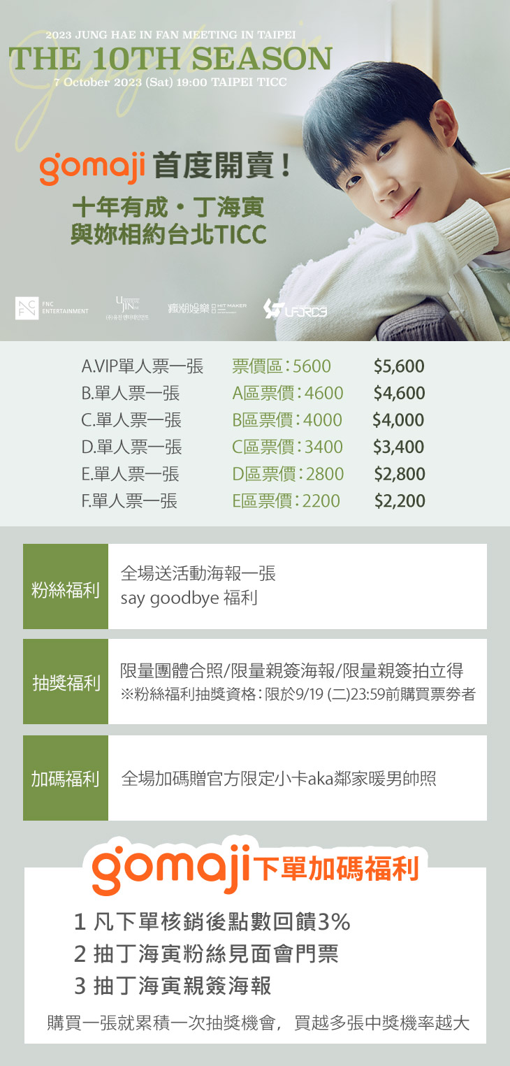 【丁海寅台北見面會】10/07 @TICC 入場門票來囉!