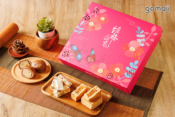 ★ 品名: 好禮推薦禮盒: 鳳梨酥5入+栗子燒5入+原味杏仁牛札糖200g