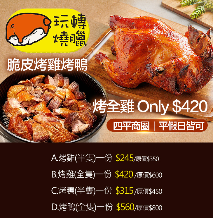 D.烤鴨(全隻)一份