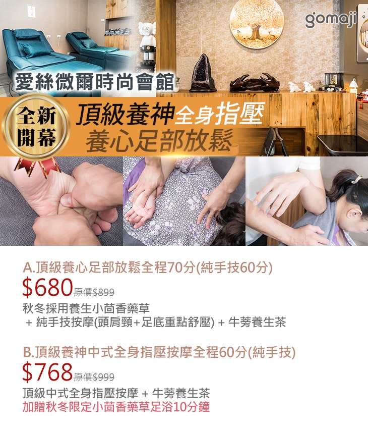 〈 頂級中式全身指壓按摩 + 牛蒡養生茶〉加贈秋冬限定小茴香藥草足浴10分鐘