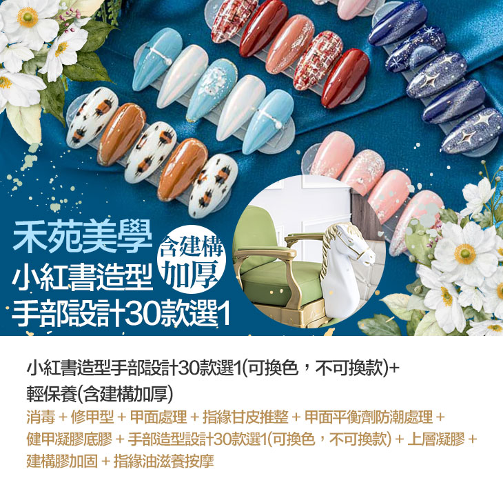 ● 小紅書造型手部設計30款選1(可換色,不可換款)+輕保養(含建構加厚)