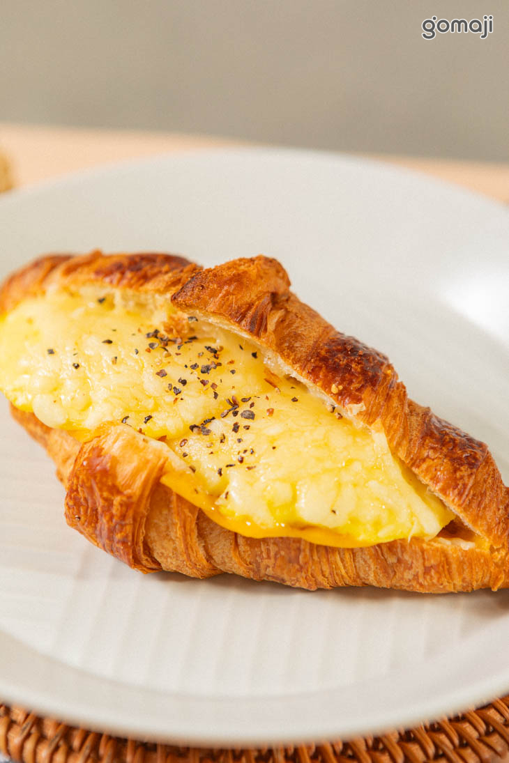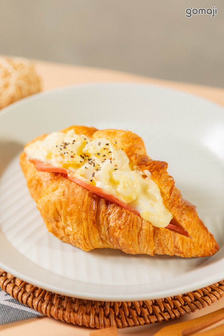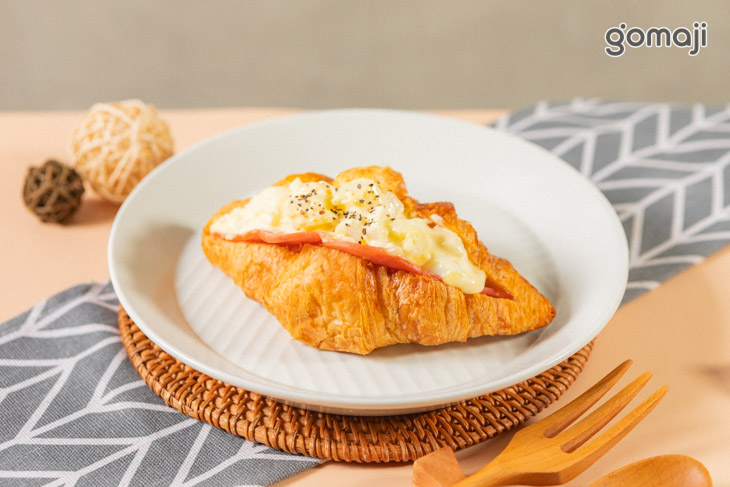 以香氣四溢的可頌包裹著豐富的玉子沙拉,充滿新鮮的香味,讓人難以抵抗!可頌外層的酥脆與內裡的柔軟可說是搭配得天衣無縫~入口時,首先感受到可頌的鬆軟層次,接著品味到玉子沙拉的鮮香滋味,將沙拉的清新和可頌的香脆完美結合,為味蕾帶來一場極致的享受!