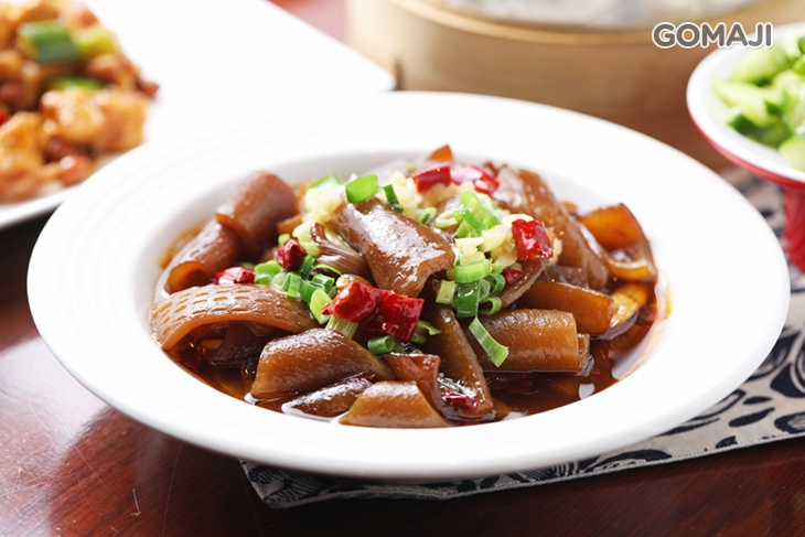 鮮醇誘人的紅燜豬皮,豬皮彈牙柔嫩,搭配鹹湯精華的獨特口感,溢出淡淡肉香,既鮮且嫩,口感美味的恰到好處!