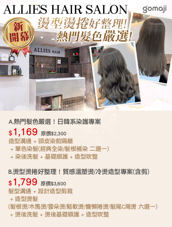 【ALLIES HAIR SALON(大同店)】感謝麻吉們熱烈搶購,已全數賣光光。