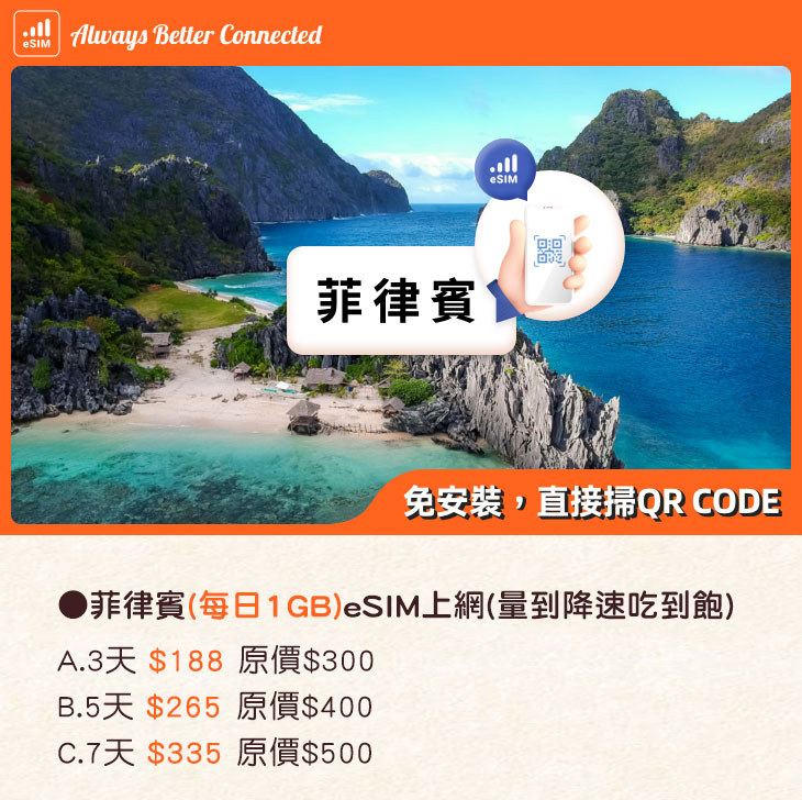 【菲律賓eSIM上網】每日1GB(3/5/7天)高速上網(免換卡)