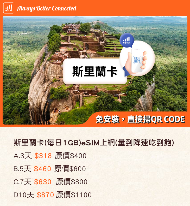【斯里蘭卡eSIM上網】每日1GB(3/5/7/10天)高速上網(免換卡)