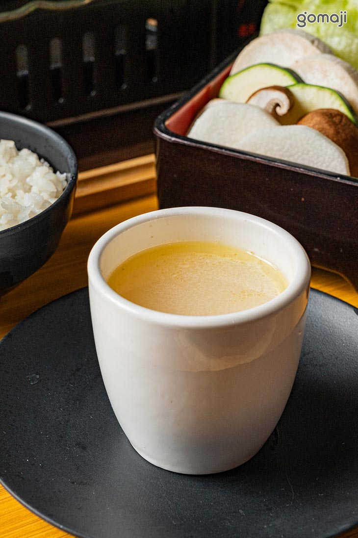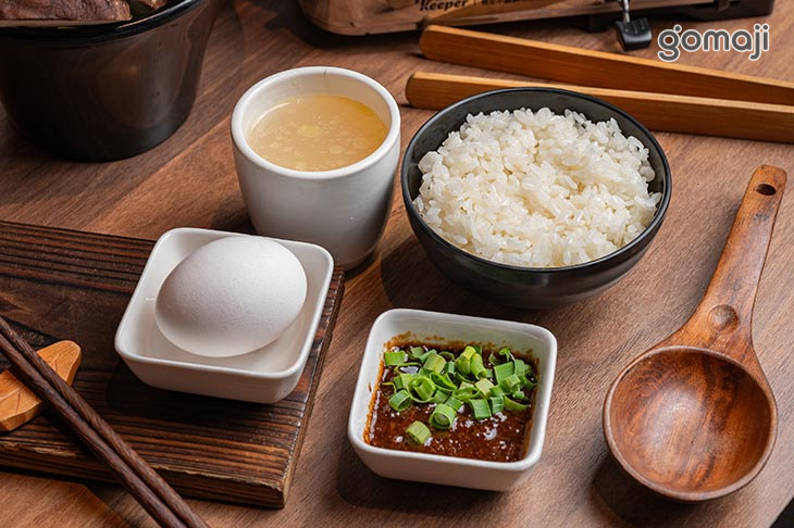 雞蛋一顆+ 醬料碟一份 + 白飯一碗 + 雞湯無限供應