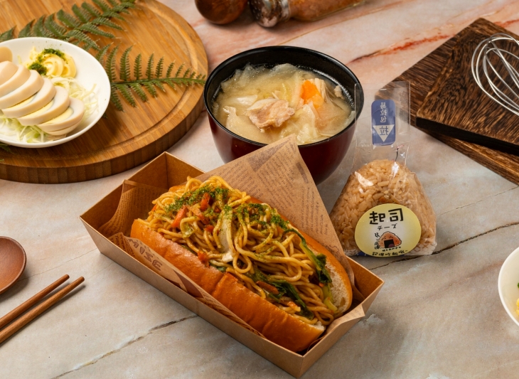 把熱騰騰的炒麵塞進蓬鬆的牛奶麵包裡,一口咬下就是這份日式炒麵麵包套餐的靈魂。麵條以日式醬汁大火快炒,捲著蔬菜的香氣,鹹香中帶點微甜,越吃越刷嘴。旁邊搭配一碗家常風味的味噌湯,暖胃又有飽足感。再加上一顆手作起司飯糰,米粒Q彈、起司香氣柔和,不僅平衡整體味道,也讓份量更完整。無論當作忙碌午餐或下班帶回家的晚餐,一盒就能享受滿滿日式街頭小食的幸福滋味。