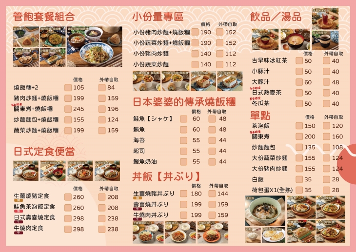 位在新北市三重區的櫻花日式食坊,是專做外帶的日式家常小食堂,沒有華麗內用區,卻把所有心思都放在飯麵與湯品上。各式餐點通通裝成方便帶走的盒餐與紙碗,無論是趕上班、接小孩或加班前想先墊墊肚子,都能快速拎了就走。想吃飽一點,可選套餐,主食配上手作飯糰,一份就讓人很有滿足感;定食類也有多種選擇,適合帶回家慢慢享用。樸實的料理、實在的分量與貼心的外帶設計,讓櫻花日式食坊成為附近住戶和上班族心中「像家裡煮好等你來拿」的那間小店。