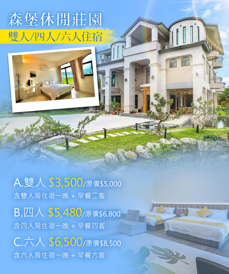 莊園內提供完善的住宿設施,讓大家可以安心享受悠閒時光、體驗自然風情。房內環境優雅寬敞、舒適整潔,一踏進來彷彿回到家一樣,令人感到溫馨自在!早晨拉開窗簾即可觀賞綠意盎然的景色,寂靜的夜晚也能讓大家卸下疲憊、沉澱心情~久久沒有出遊的麻吉們,不妨趁這次推出的好機會,來場輕旅行吧!