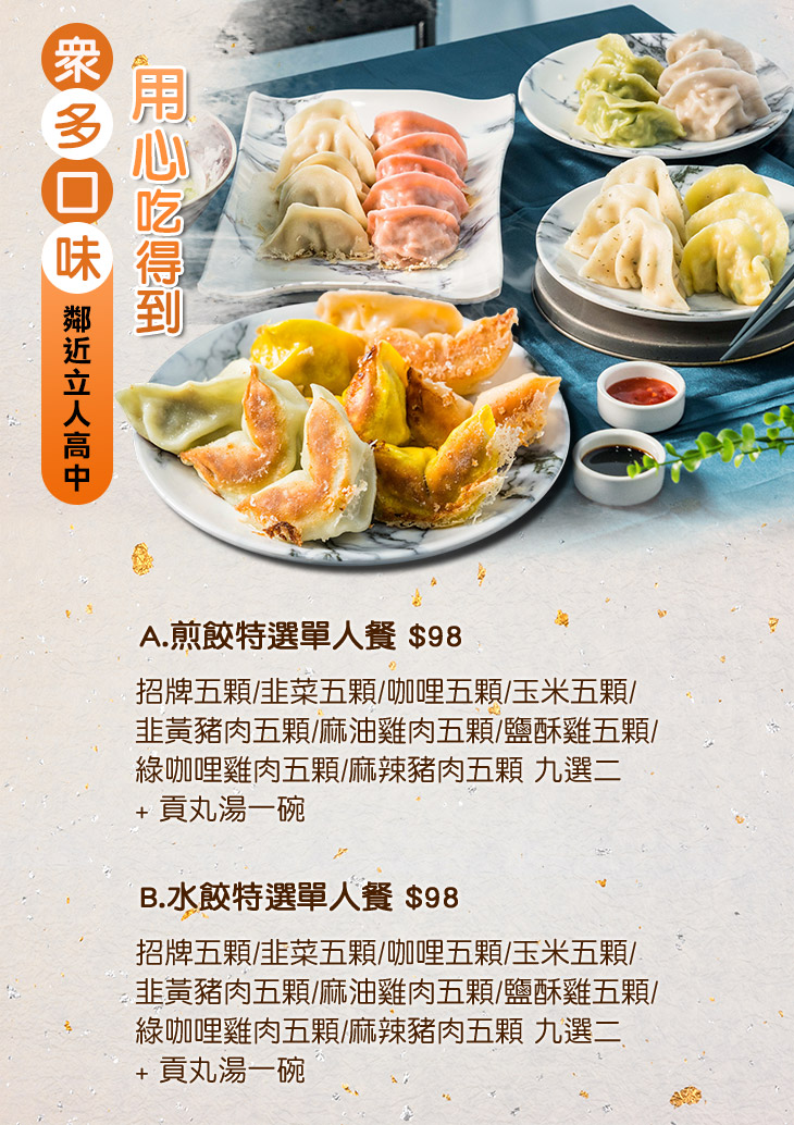 由小攤販開始經營的專賣店,逐漸演變成當地人最受喜愛的餃子店!每一顆餃子都認真烹飪,薄皮餡多,絕妙滋味寄託了店家的用心和手藝!店內特別的是結合了不同做法的餃子,不論是煎餃還是水餃,都為味蕾帶來極致享受~無論是經典口味還是創意口味,都能滿足挑剔的美食家!在這裡,不僅品味到家鄉的味道,更感受到濃濃的人情味,讓你在繁忙的生活中找到一絲溫馨的寄託!