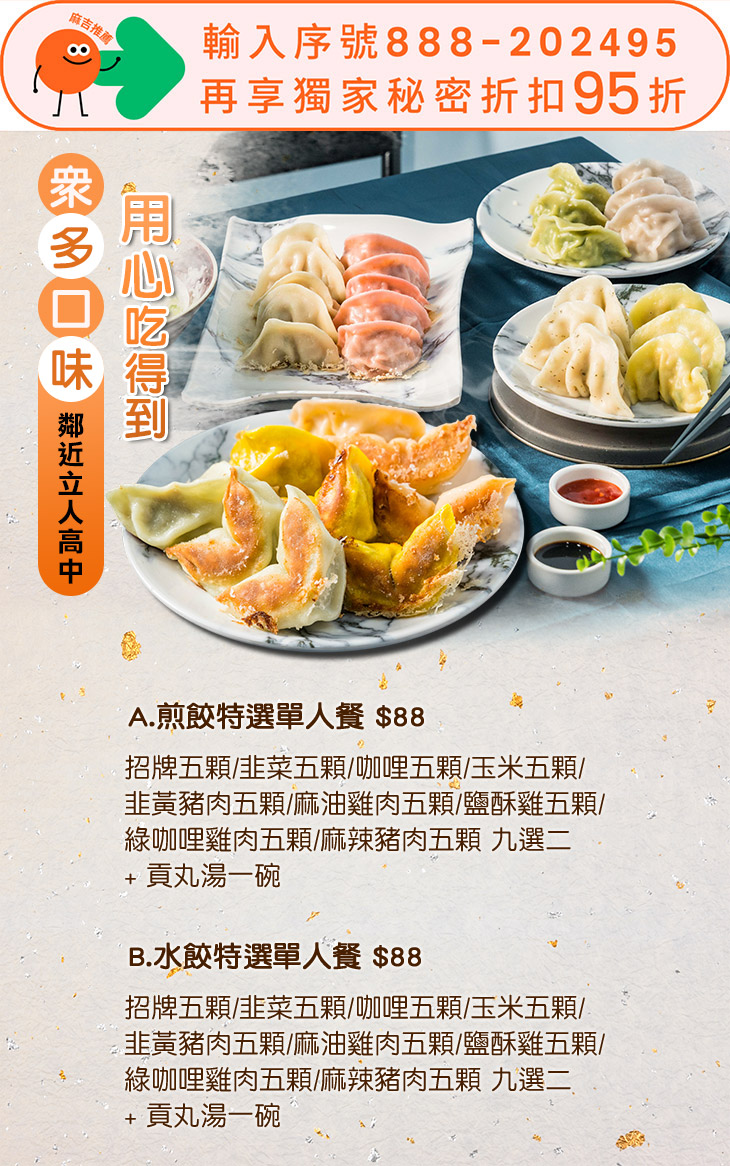 由小攤販開始經營的專賣店,逐漸演變成當地人最受喜愛的餃子店!每一顆餃子都認真烹飪,薄皮餡多,絕妙滋味寄託了店家的用心和手藝!店內特別的是結合了不同做法的餃子,不論是煎餃還是水餃,都為味蕾帶來極致享受~無論是經典口味還是創意口味,都能滿足挑剔的美食家!在這裡,不僅品味到家鄉的味道,更感受到濃濃的人情味,讓你在繁忙的生活中找到一絲溫馨的寄託!