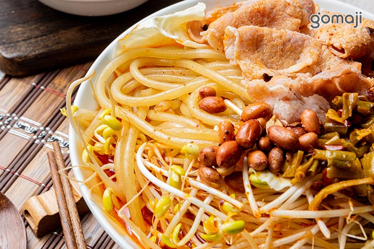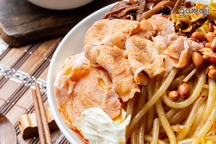 紅薯粉Q彈有嚼勁的特色,搭配豐富的豬肉,以及充滿酸辣風味的湯頭,多種滋味調和而成這碗酸辣粉。又麻、又辣、又酸的風味,不僅帶來難忘的味蕾饗宴,滋味更是讓人回味無窮,可說是一場色香味俱全、充滿風味的美食冒險,將您帶入一趟美味又刺激的味蕾之旅~