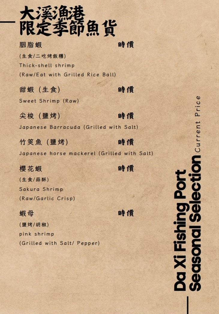 ※ 菜色內容依季節時令調整,實際菜色、價目依現場提供為主。
