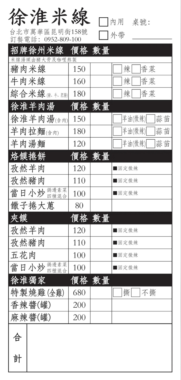 紅底白字的招牌醒目吸睛,搭配簡約明亮的用餐空間,無論內用或外帶皆舒適便利。店家以一碗淮味濃郁的米線擄獲饕客味蕾,湯頭以豬大骨與咖哩慢火熬煮,搭配滑順、吸汁力強的徐州米線,香氣四溢、層次豐富,每一口都讓人回味。除了米線令人驚艷,酥香肉夾饃與烙饃捲餅也值得一試,豐富組合讓人吃得飽足又滿足。特製辣椒醬更是一絕,香而不嗆,提味不搶味,愛好重口味的朋友別錯過。店內環境整潔,服務親切迅速,無論是飽餐或小食,都能在這裡找到剛剛好的選擇。逛完西門町後,不妨走進【徐淮米線館】,讓這碗熱騰騰的米線暖胃也暖心!