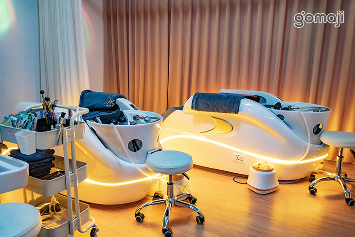 〈草本泡腳 + 足部按摩舒壓 + 精油芳饗 + 天使能量波循環 + 臉部護膚(潔顏+保濕) + 肩頸精油舒眠鬆筋 + 前胸鎖骨按摩 + 頭部經絡紓壓 + 越式洗髮 + 頭部舒壓、護髮、草本蒸薰 + 越式手法刺激髮根減輕頭皮緊繃 + 髮絲護理與頭皮滋養液 + 肩頸頭SPA水循環 + 吹乾髮絲 + 課後小點〉