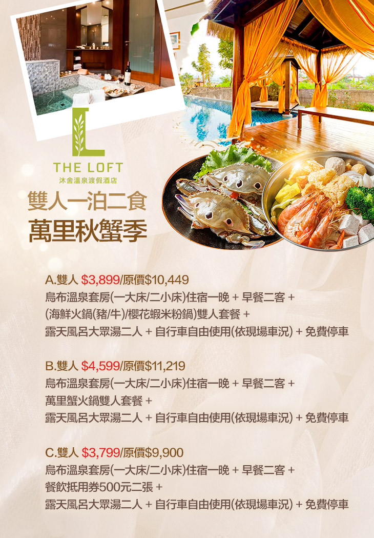 ★ A、B方案提供雙人套餐,C方案有餐飲抵用券,保證讓您吃得好滿足!