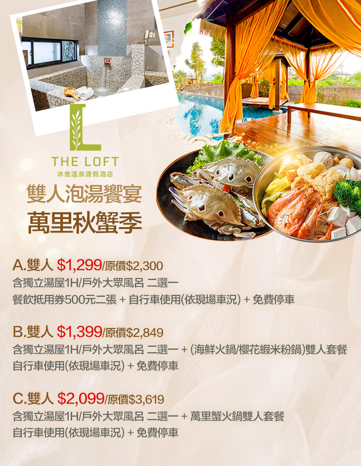 ★ A方案有餐飲抵用券,B、C方案提供雙人套餐,保證讓您吃得好滿足!
