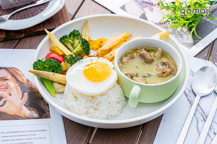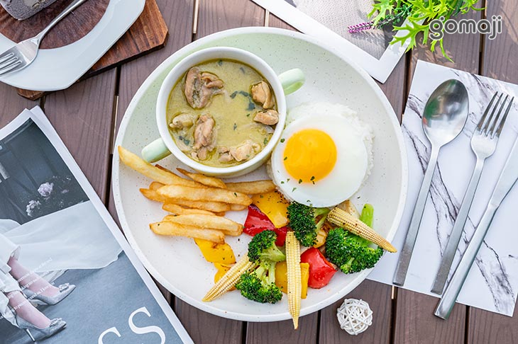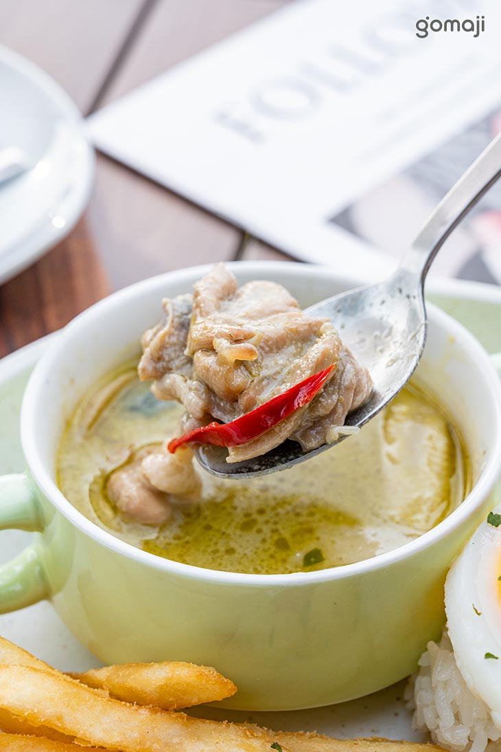 嚴選厚實嫩美的雞肉,與南洋味十足的綠咖哩醬完美融合,透過主廚的嫻熟手藝,慢火細燉而迸發驚人火花,搭配繽紛爽脆的蔬菜、薯條一同享用,感受香濃與清爽的滋味合而為一~細細品味,Q嫩細緻的雞肉緊緊吸附醬汁精華,於舌尖綻放辛而不燥的溫潤底蘊,讓人越吃越過癮、簡直欲罷不能!