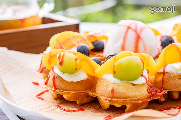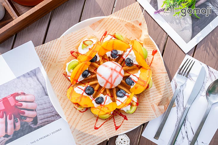 新鮮現烤的鬆餅,配上冰淇淋以及新鮮的水果還會擠上奶油以及淋上果醬,就是一份滿足的餐點啦!美味的創意組合,迸出意想不到的味蕾驚喜。鬆餅紮實酥香的口感,讓人想一口接一口。悠閒的午後,與親愛的家人、伴侶或是好朋友,來店一同享受,幸福就是這麼簡單!