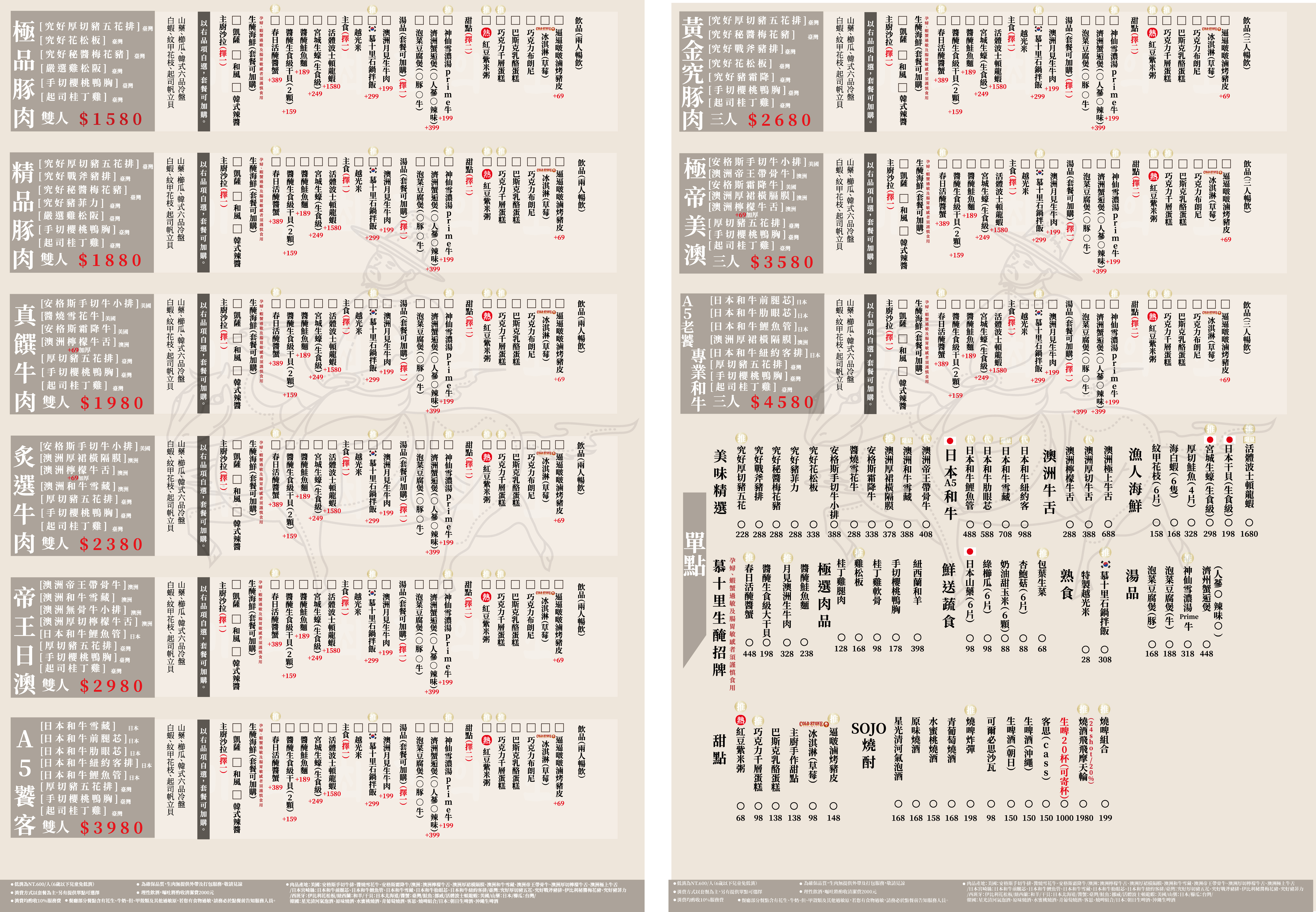 豚肉控不能錯過的奢華選擇!選自多款高品質豬肉部位,包括伊比利豚梅花、究好豬里肌條、溫體熟成豬梅花,以及溫體熟成小戰斧,每一片肉質皆油花均勻、鮮嫩多汁。無論是喜歡嫩口滑順還是帶嚼勁的口感,都能找到心頭好,厚切小戰斧煎烤後肉香四溢,梅花與里肌則能展現細緻脂香與柔嫩肉感,適合搭配特製沾醬或鹽味品嚐,原汁原味最能吃出食材實力,從視覺到味覺都是一場豐盛的豚肉盛宴!