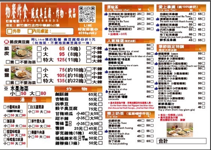 你以為只賣美味的臭豆腐嗎?No~現在升級連炸物、飲料都有,滿足愛吃美食好料的你!