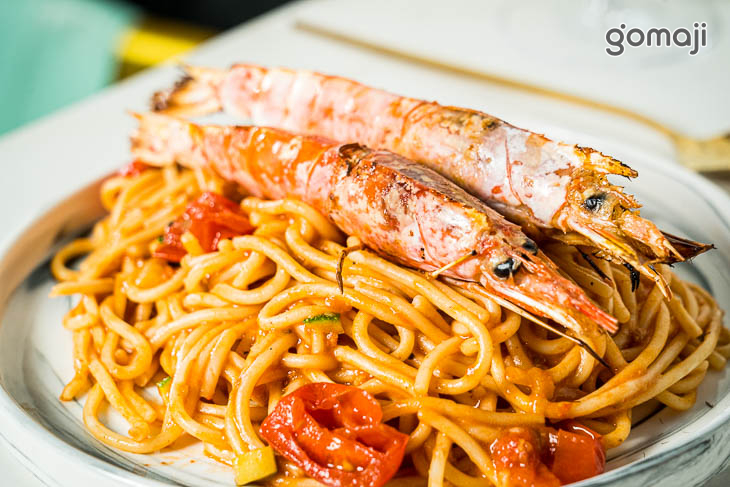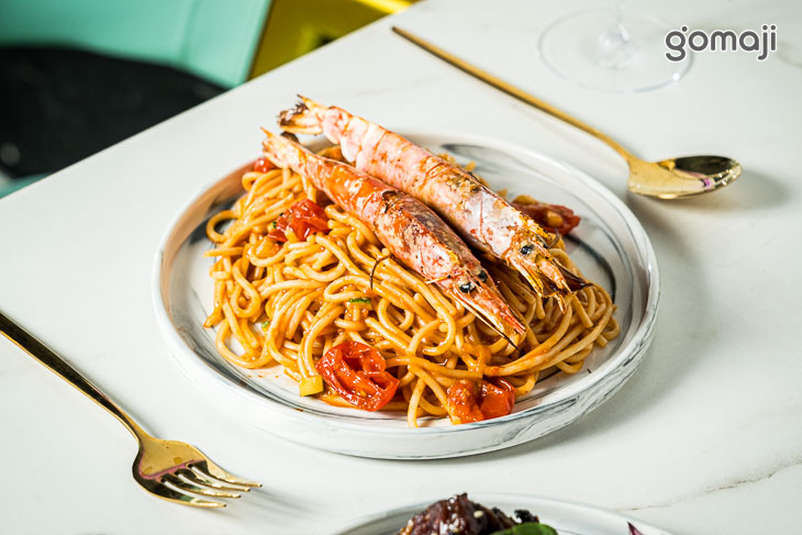 最濃郁蝦醬義大利麵~鮮紅豔麗、百吃不膩的美味!茄汁義大利麵成功展現了料理的精髓,在主廚的精湛手藝之下,醬汁的調味恰到好處,與Q軟的麵條形成絕佳的酸甜口感,搭配上肉質厚實飽滿、Q彈甘甜的天使紅蝦,風味獨特,蝦味爆棚,是少有的風味義大利麵,這道料理就是來店必點!