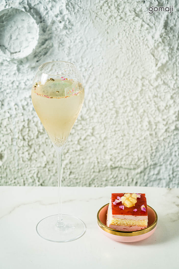 覆盆玫果蛋糕+氣泡飲