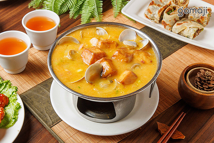 金黃濃郁的蟹黃豆腐煲一上桌,就先被那誘人的色澤與香氣收服。細火慢燉的蟹黃湯底滑順飽滿,入口帶著溫潤海味與淡淡奶香,愈喝愈順口。煲裡放入外層微煎的嫩豆腐,吸飽醬汁後一咬就爆汁,軟嫩綿密完全不會碎散,再搭配鮮甜蛤蜊與海鮮配料,讓整鍋風味更加豐富有層次。入口滿滿都是蟹香與豆香交織的滿足,是聚餐桌上從長輩到小朋友都會搶著再來一碗的人氣料理。